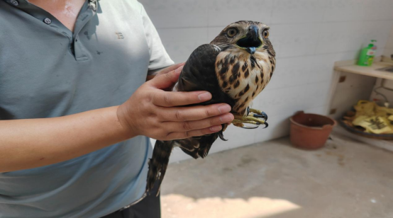 接到消息后,鎮林業站干部迅速趕赴現場查看情況,經過搜索識別,初步判定是國家二級保護動物“鳳頭鷹”,且其翅膀受傷嚴重,已無法正常飛行。情況緊急,鎮林業站迅速與縣林業部門聯系對接,在專業指導下對受傷部位進行先期處理,并準備食物進行投喂,盡可能為后續專業救治爭取寶貴時間。