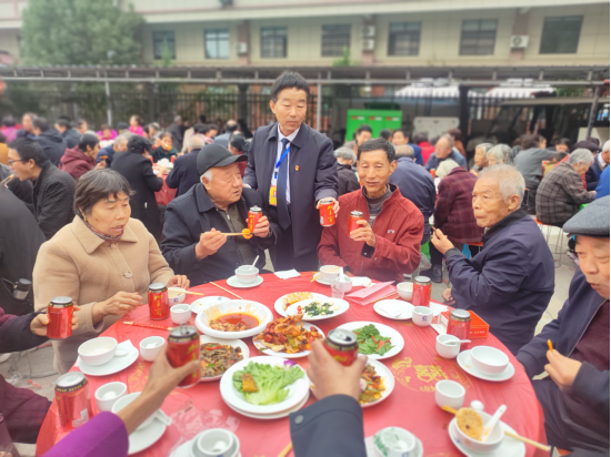 文藝演出結束后,長壽宴正式開席。社區工作人員早已提前布置好餐桌和菜肴,老人們懷著喜悅的心情陸續入座,大家圍坐在一起,一邊品嘗著美味佳肴,一邊拉著家常,分享著生活中的趣事和社區發展的變化。“社區每年都記得我們這些老人,不僅有好看的節目,還有這么豐盛的宴席,心里真暖和!”今年81歲的李爺爺激動地說,臉上洋溢著幸福的笑容。社區工作人員穿梭在餐桌之間,主動為老人們添菜、倒茶,耐心詢問老人們的需求,用細致周到的服務讓老人們感受到了家一般的溫暖。