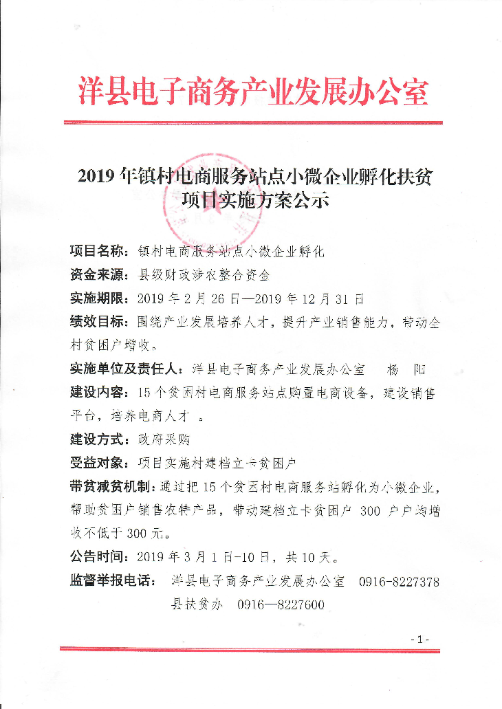 2019年鎮村電商服務站點小微企業孵化扶貧項目實施方案公示