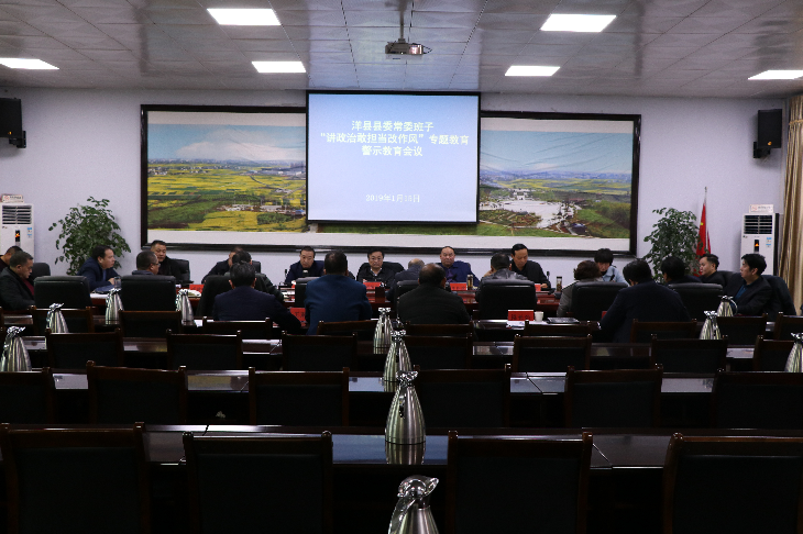 1月15日,洋縣召開縣委常委班子“講政治、敢擔當、改作風”專題教育警示教育會,所有在家縣級領導參加會議。會議由縣委書記胡瑞安主持。