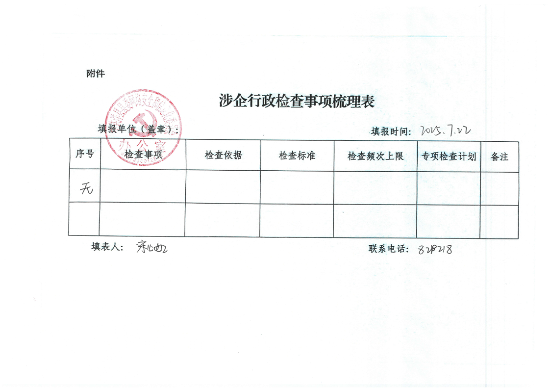 中共洋縣縣委網絡安全和信息化委員會涉企行政檢查事項梳理表
