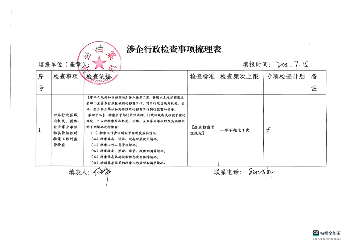 洋縣檔案館涉企行政檢查事項(xiàng)梳理表