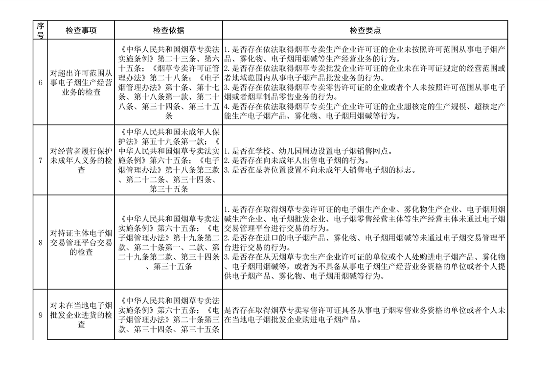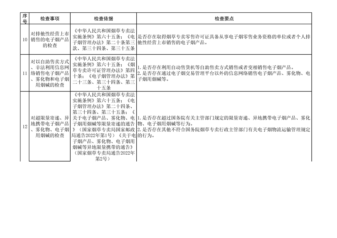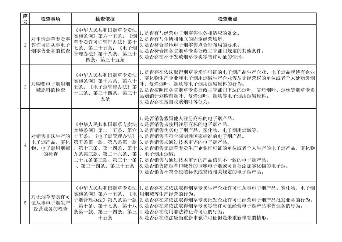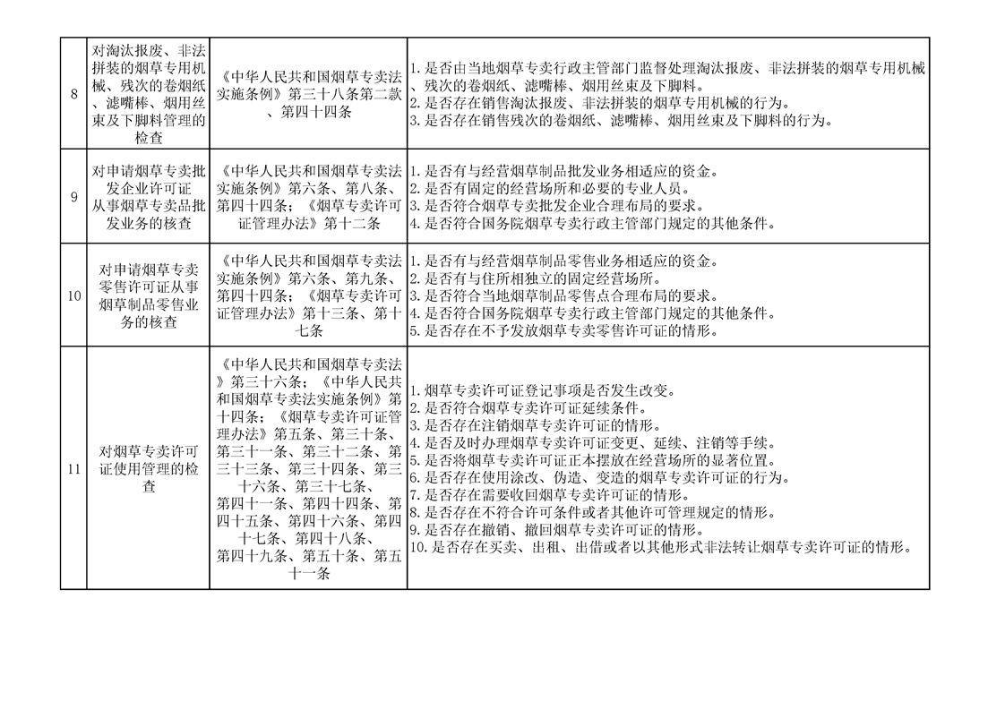 煙草專賣涉企行政檢查事項及標準