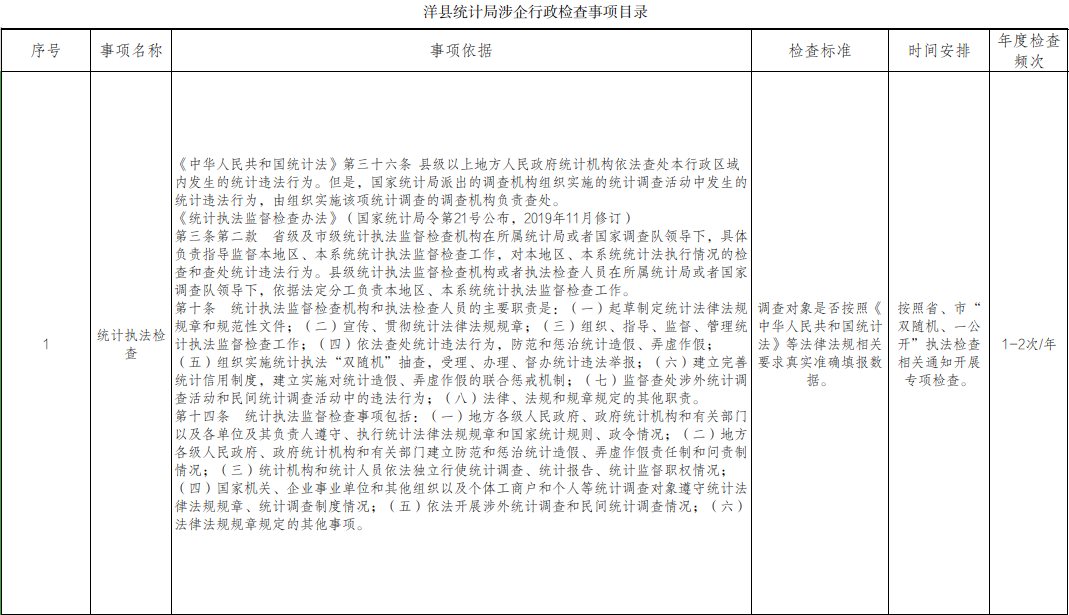 洋縣統(tǒng)計(jì)局涉企行政檢查事項(xiàng)目錄