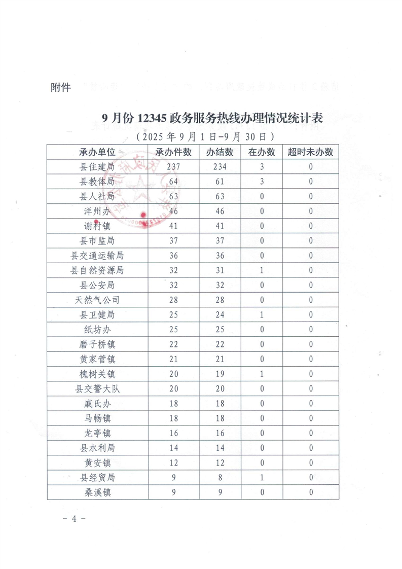 洋縣人民政府辦公室關于9月份12345政務服務熱線及市(縣)長信箱等群眾訴求辦理情況的通報