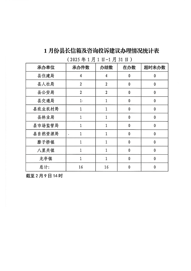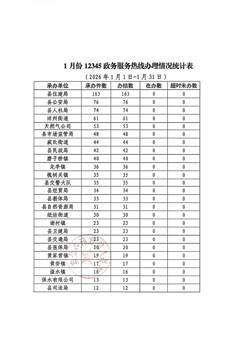2026年1月份12345政務服務熱線及市(縣)長信箱等群眾訴求辦理情況