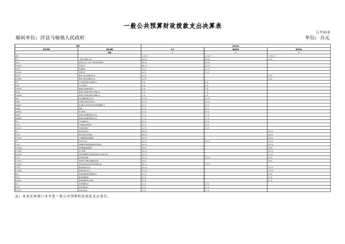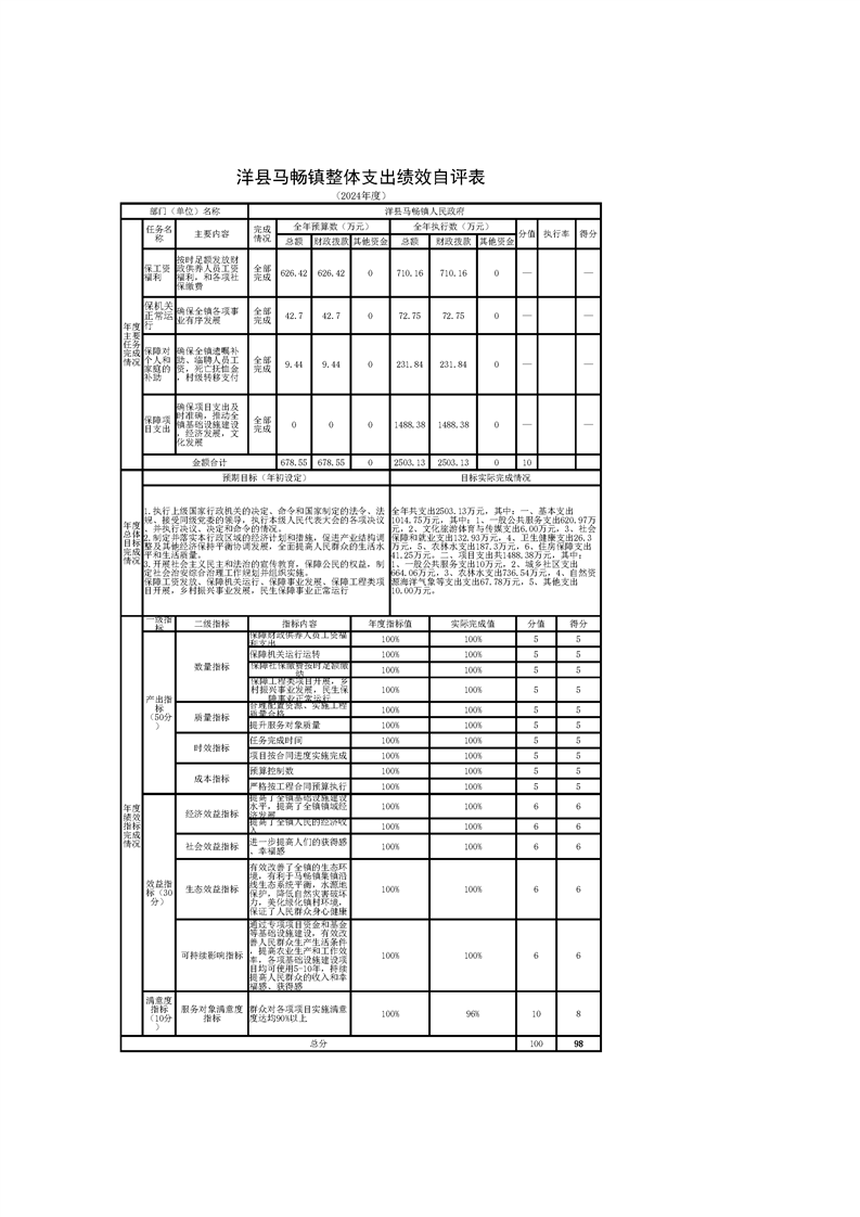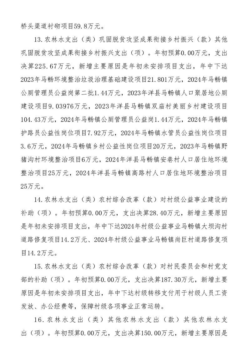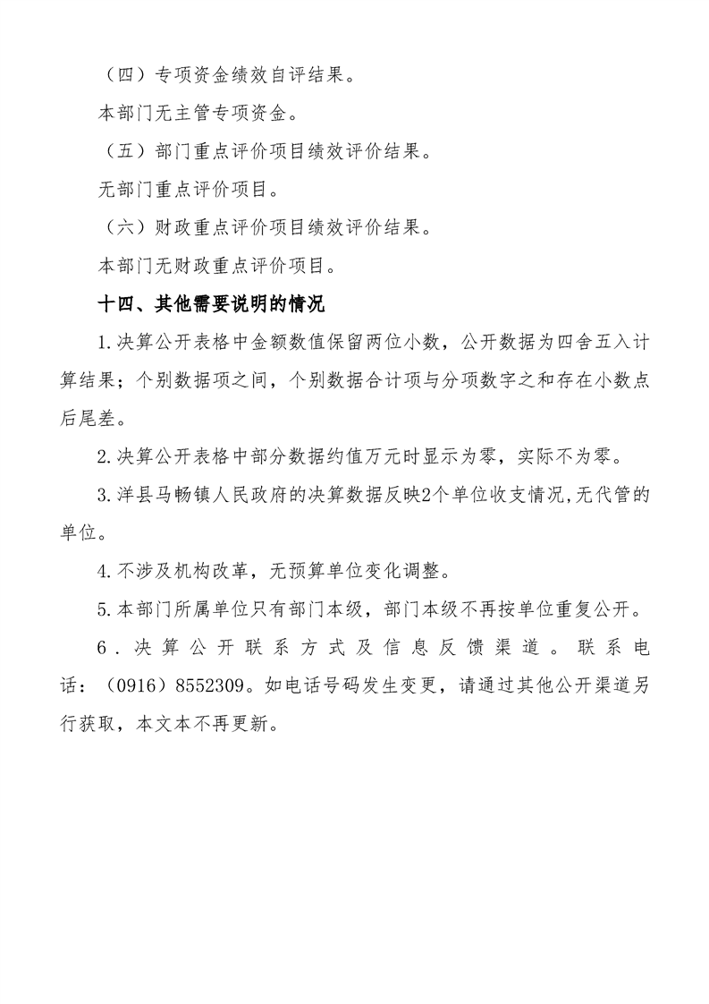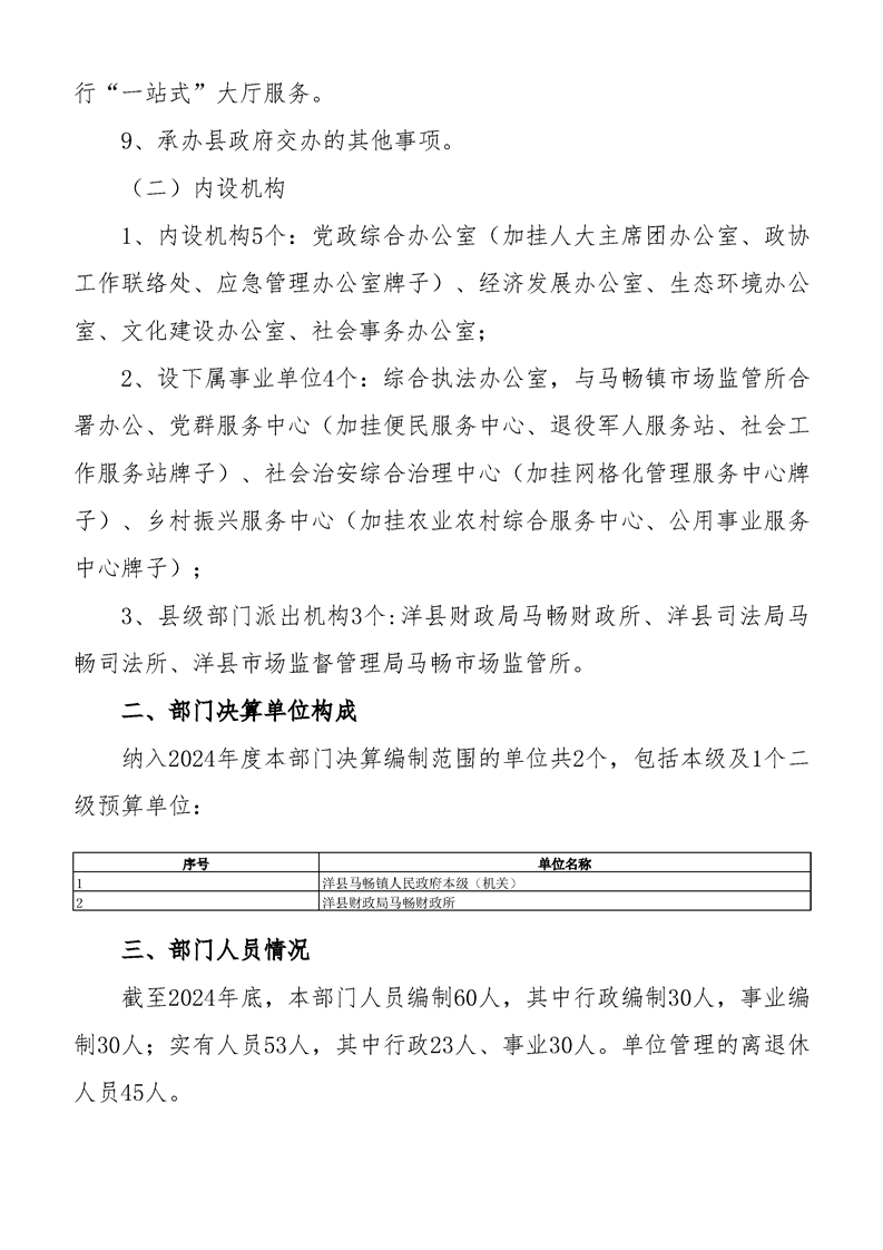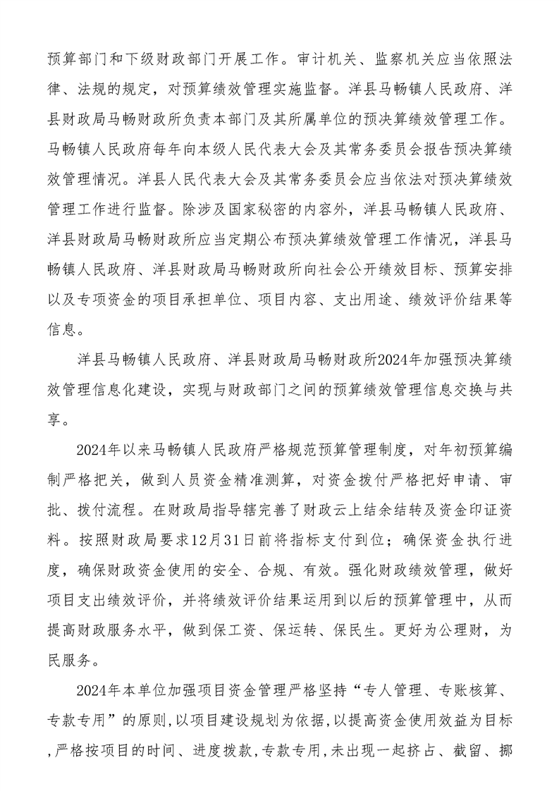 洋縣馬暢鎮(zhèn)人民政府2024年度部門決算