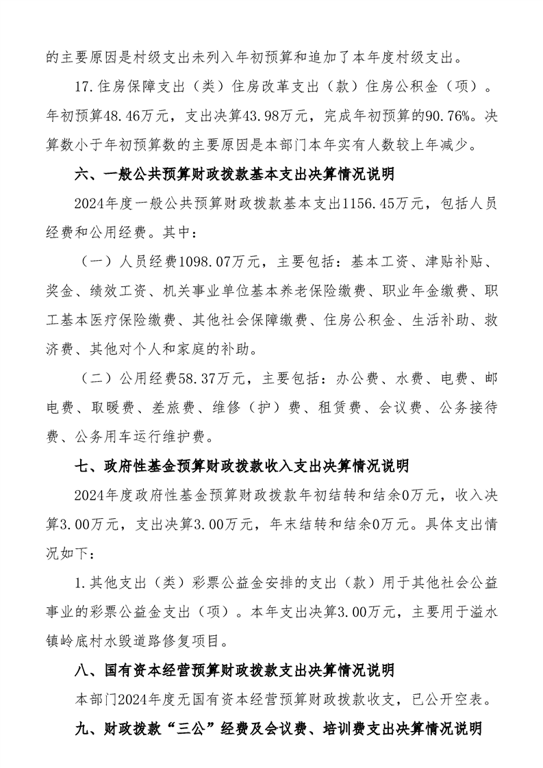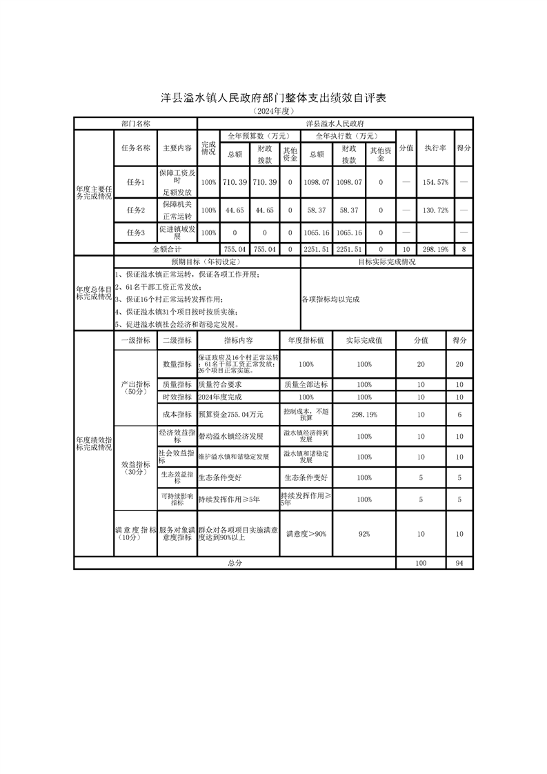 洋縣溢水鎮(zhèn)人民政府2024年度部門決算