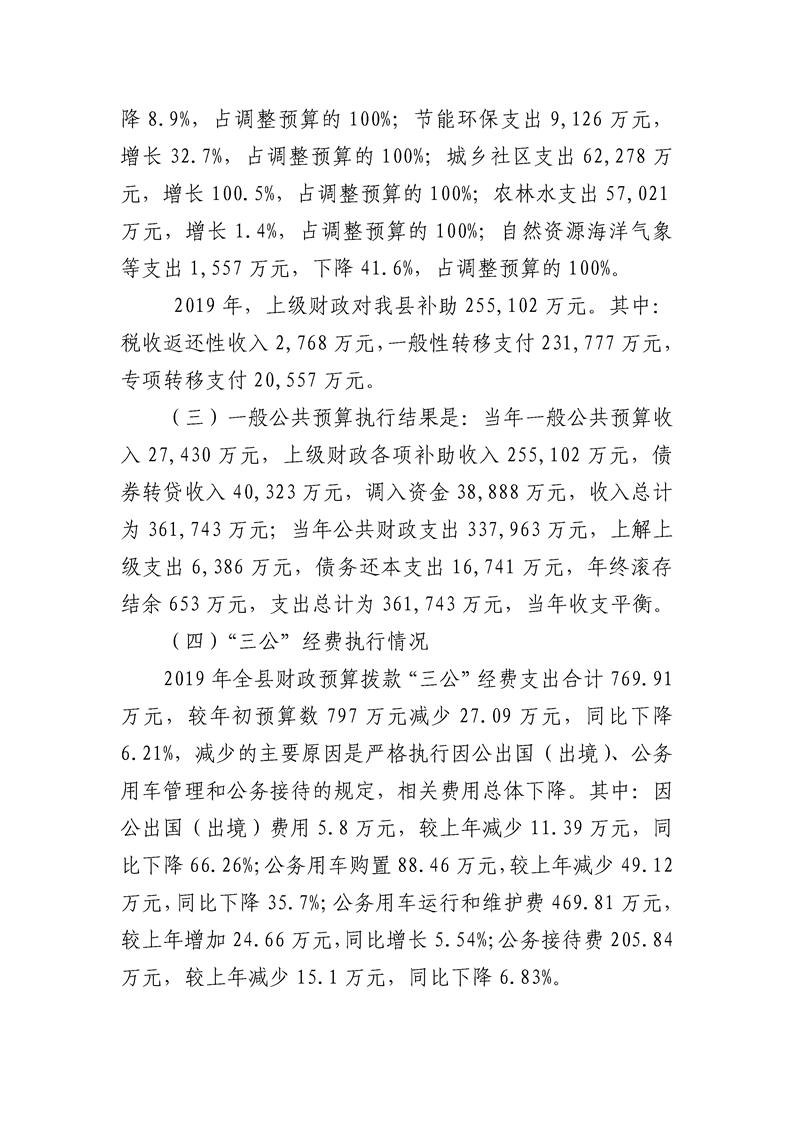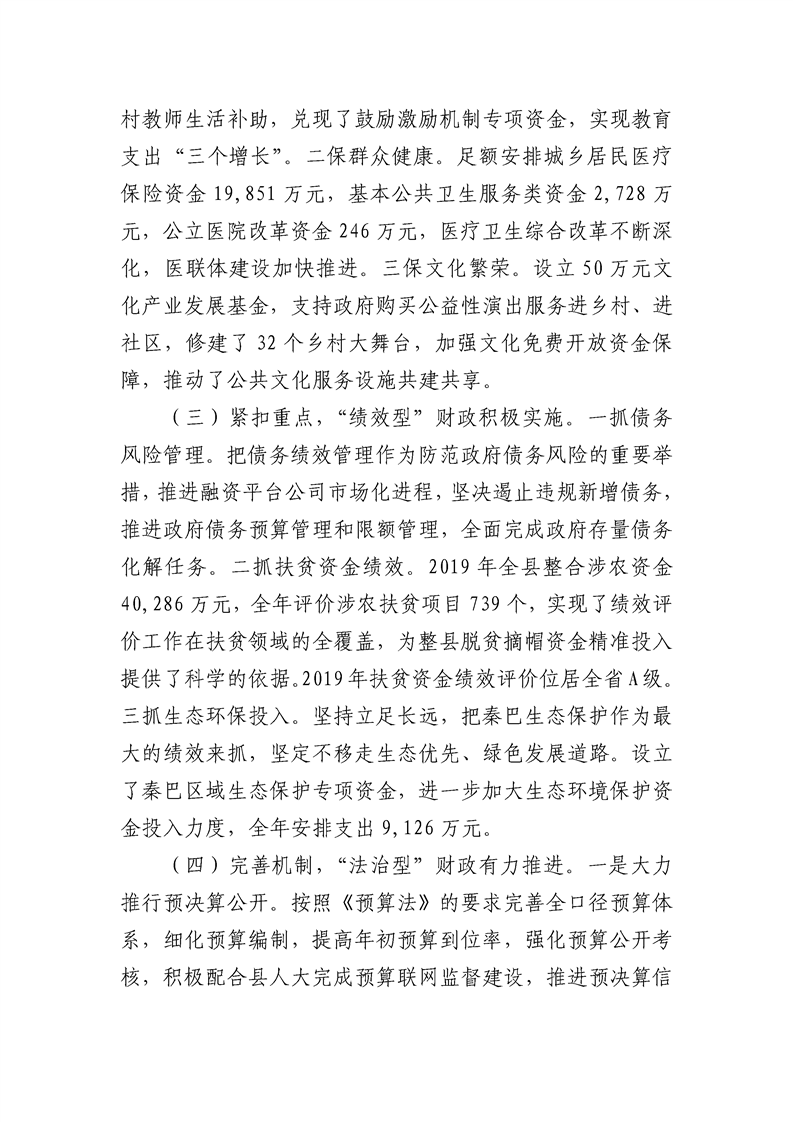 洋縣人民政府關(guān)于洋縣2019年財(cái)政決算情況的報(bào)告