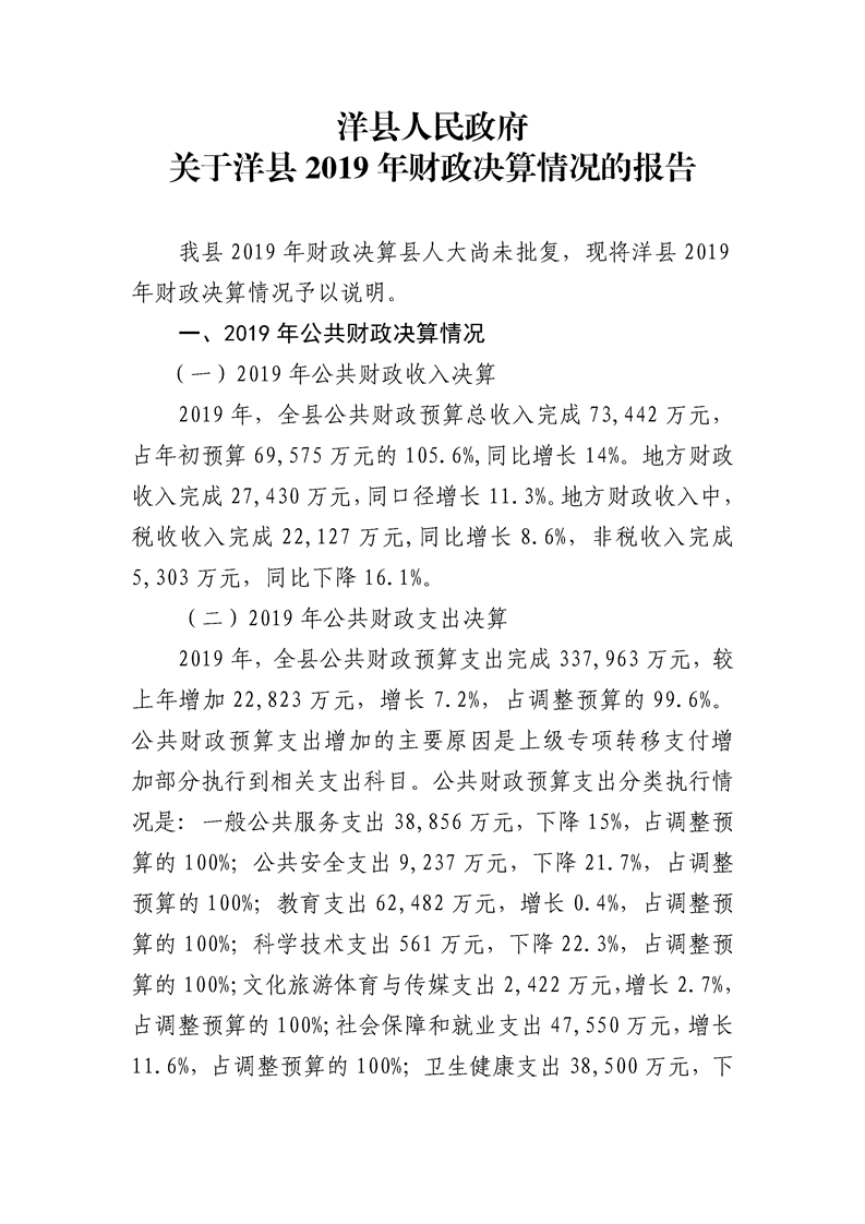 洋縣人民政府關(guān)于洋縣2019年財(cái)政決算情況的報(bào)告 |
