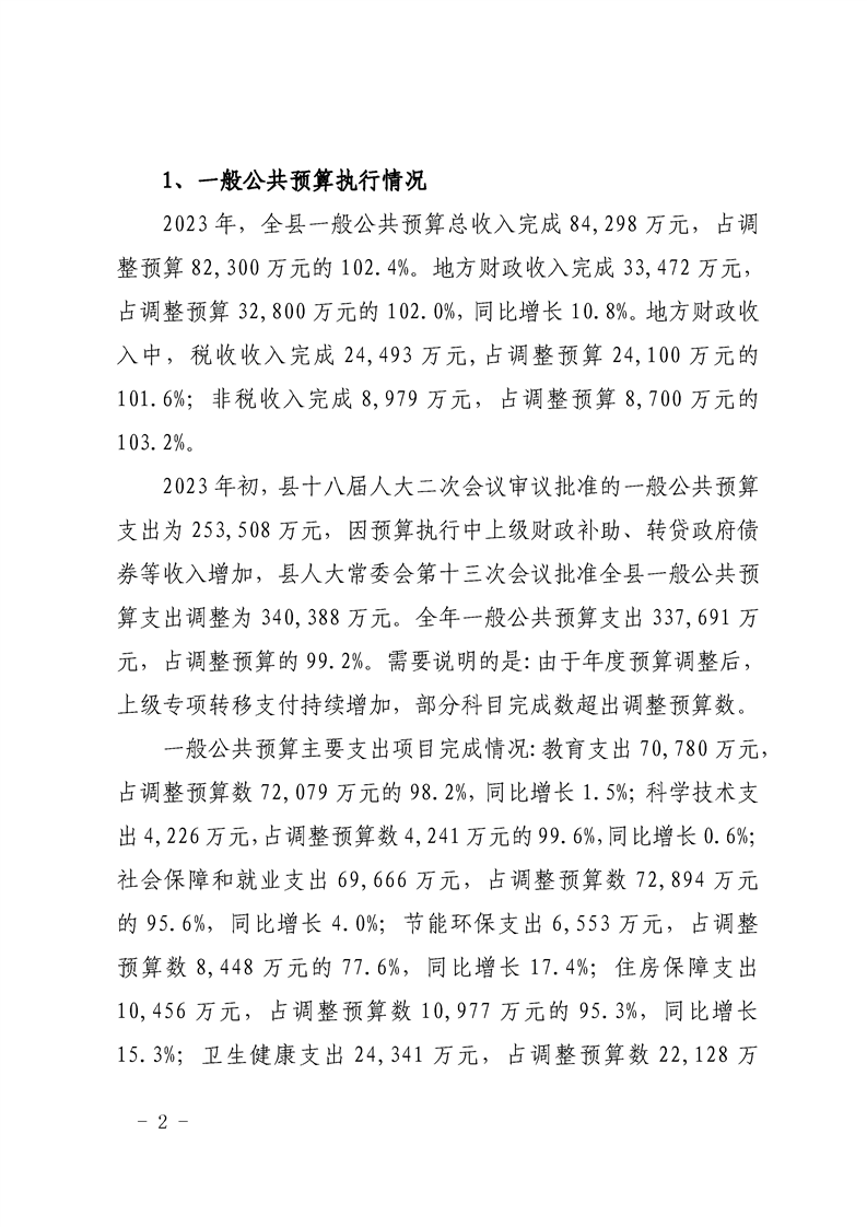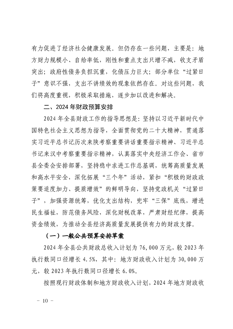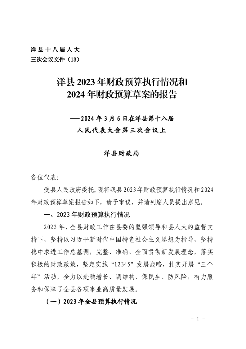 洋縣2023年財政預算執行情況和2024年財政預算草案的報告