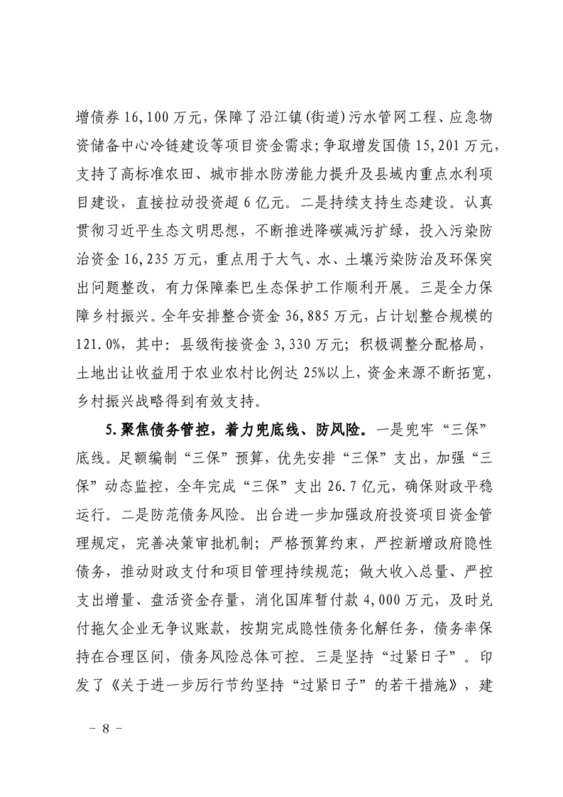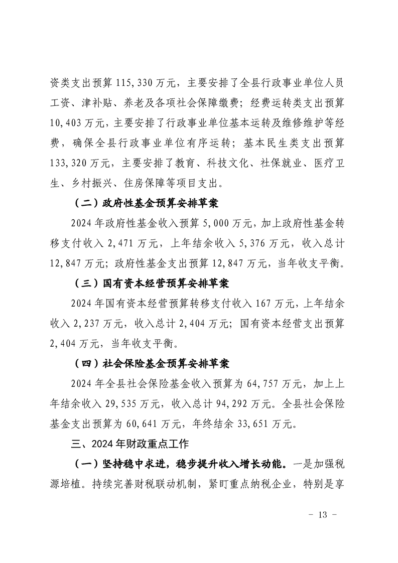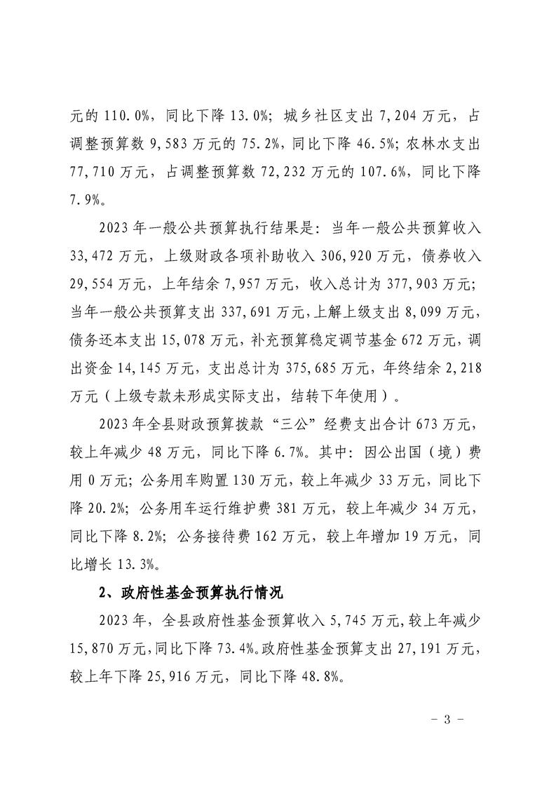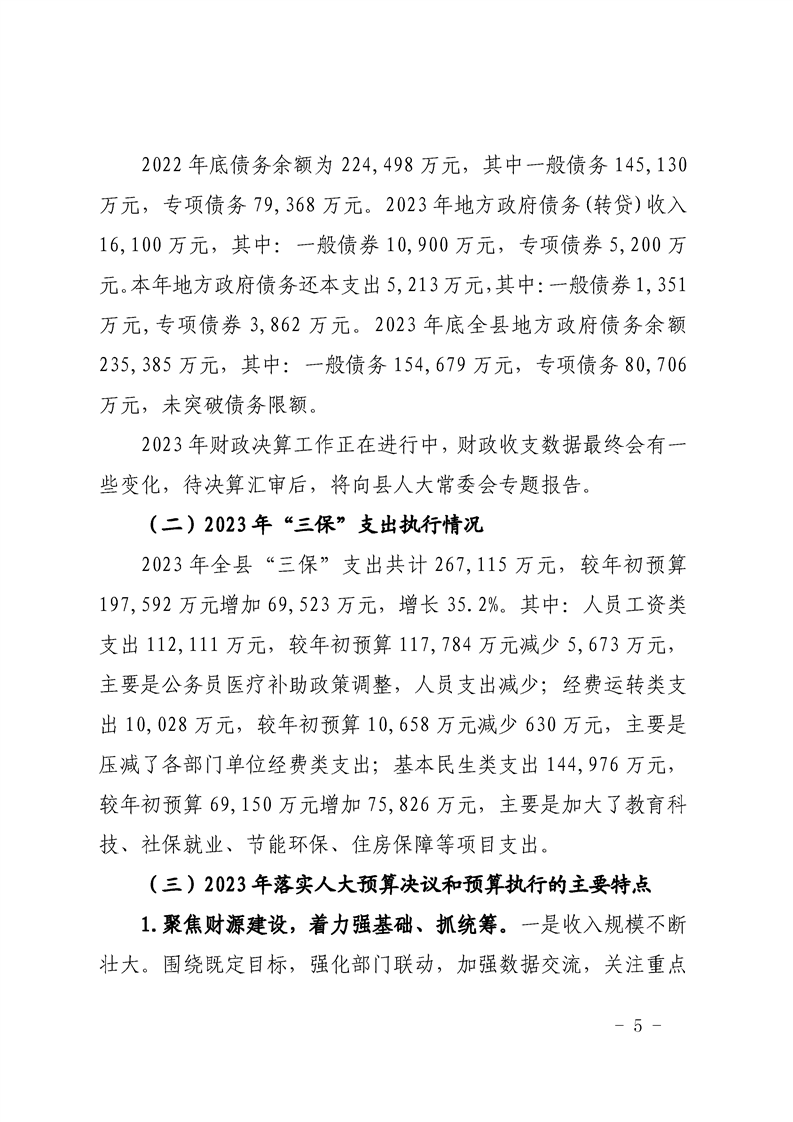 洋縣2023年財政預算執行情況和2024年財政預算草案的報告