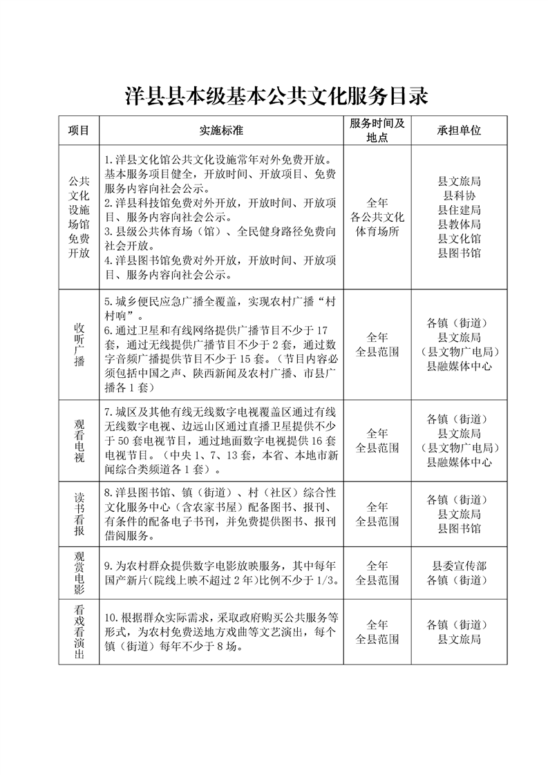 洋縣縣本級(jí)基本公共文化服務(wù)目錄 |