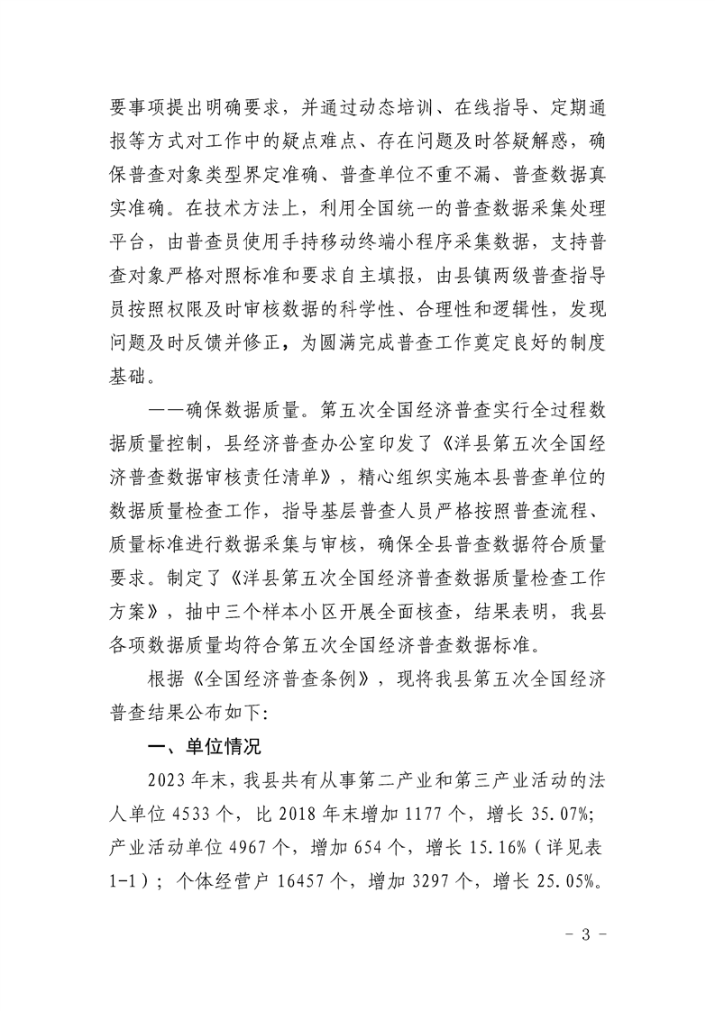 洋縣第五次全國經(jīng)濟普查公報(第一號)——單位基本情況及部分新興產(chǎn)業(yè)發(fā)展情況