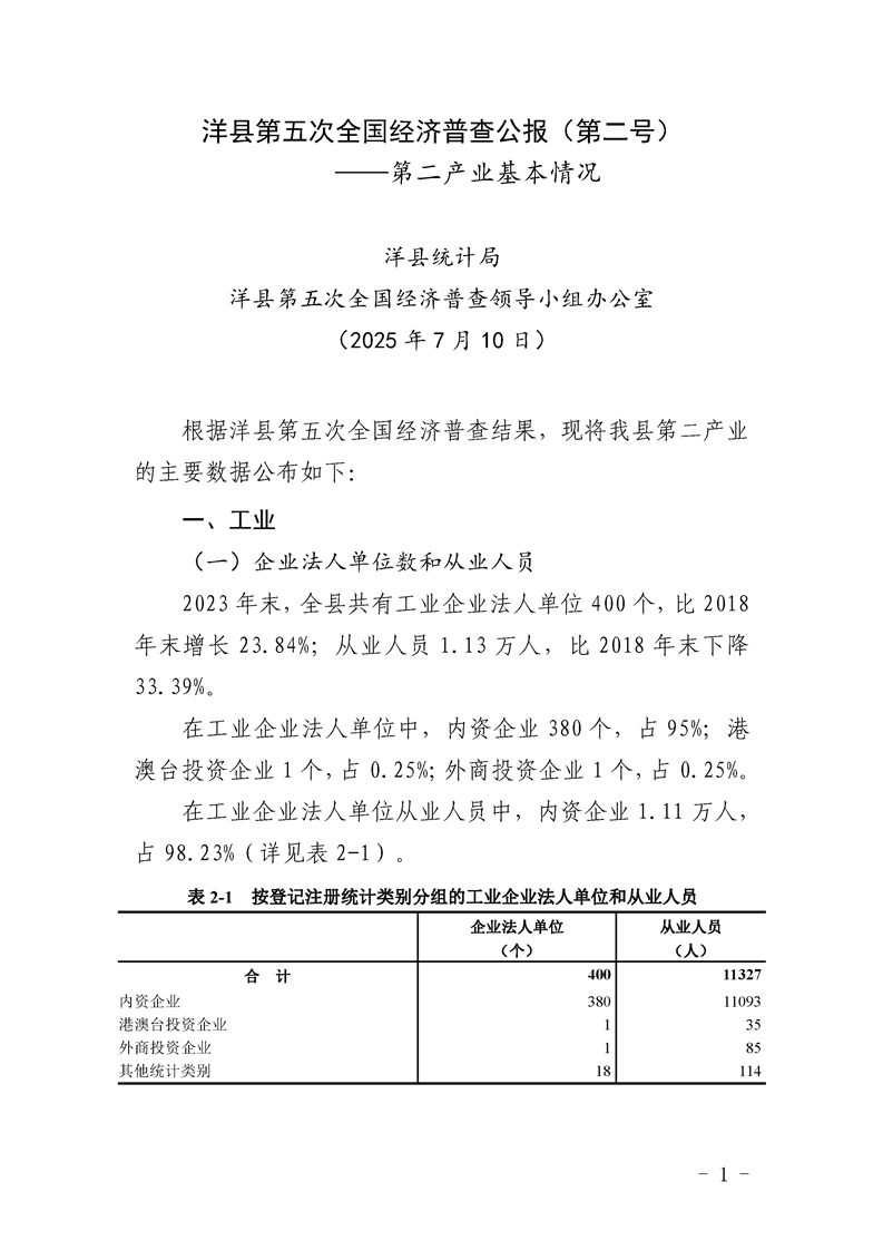 洋縣第五次全國經濟普查公報(第二號)——第二產業基本情況