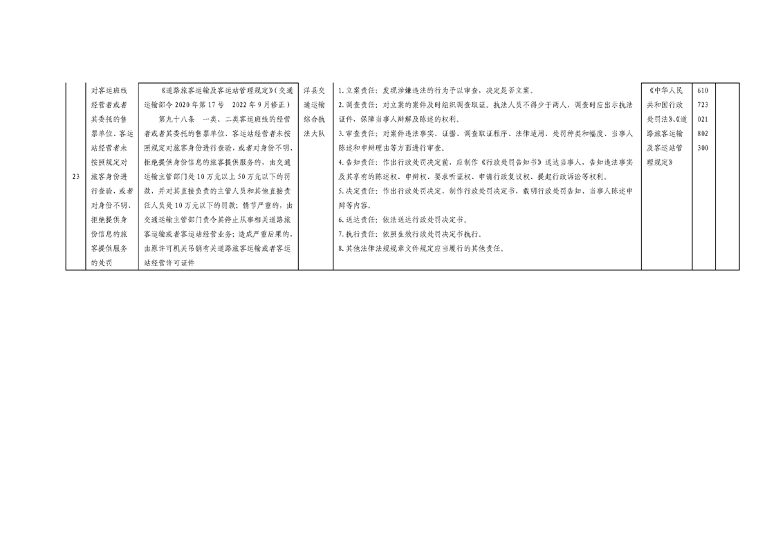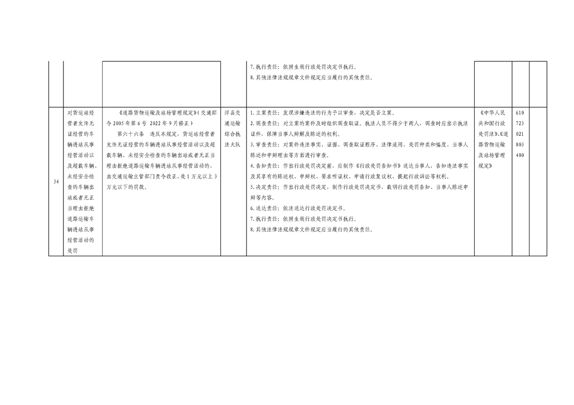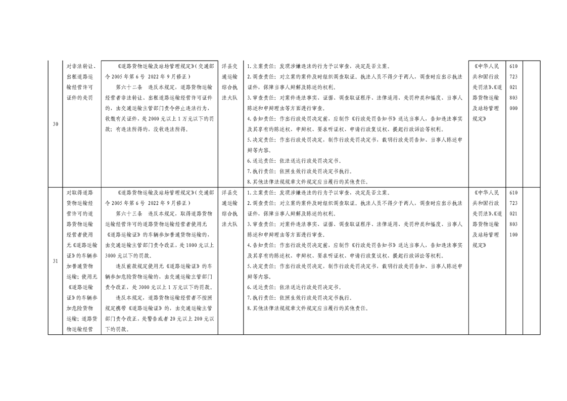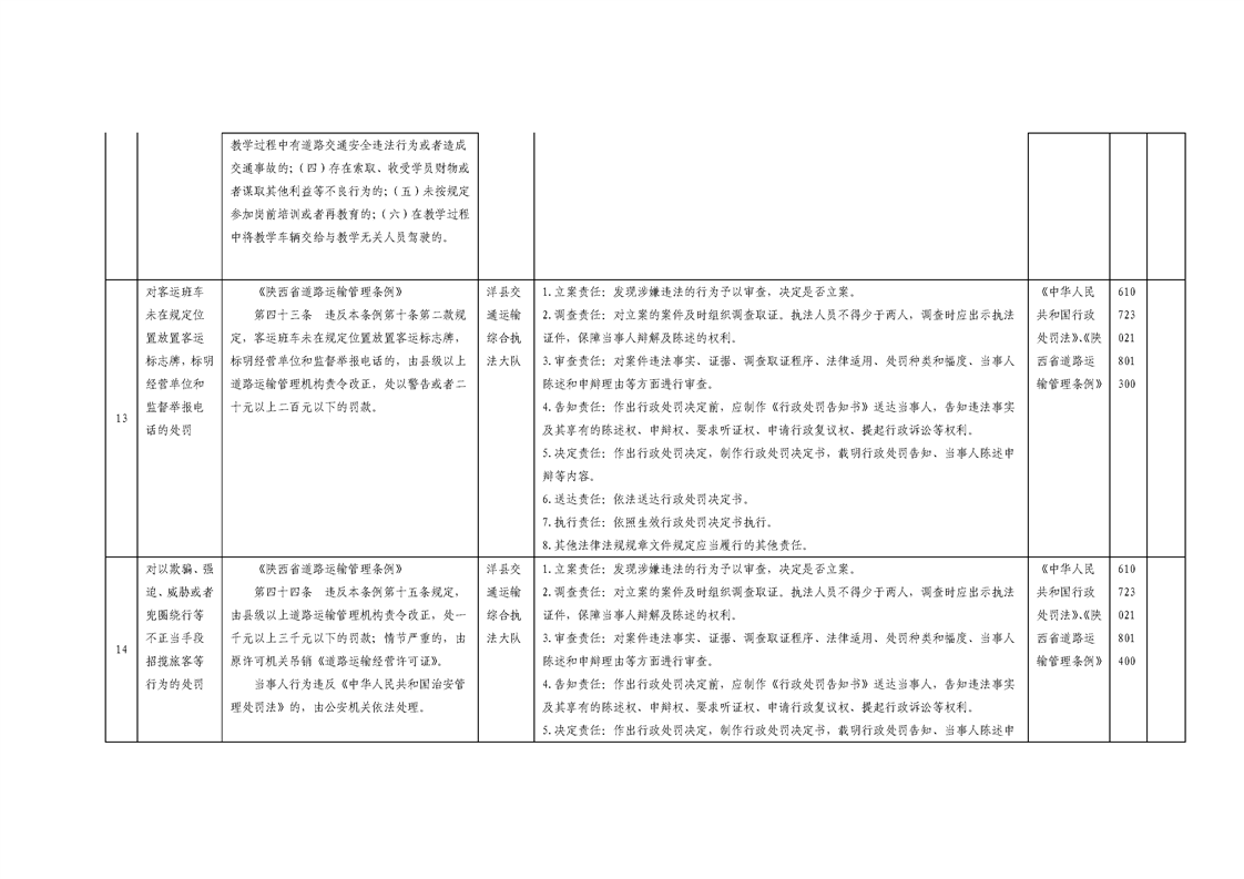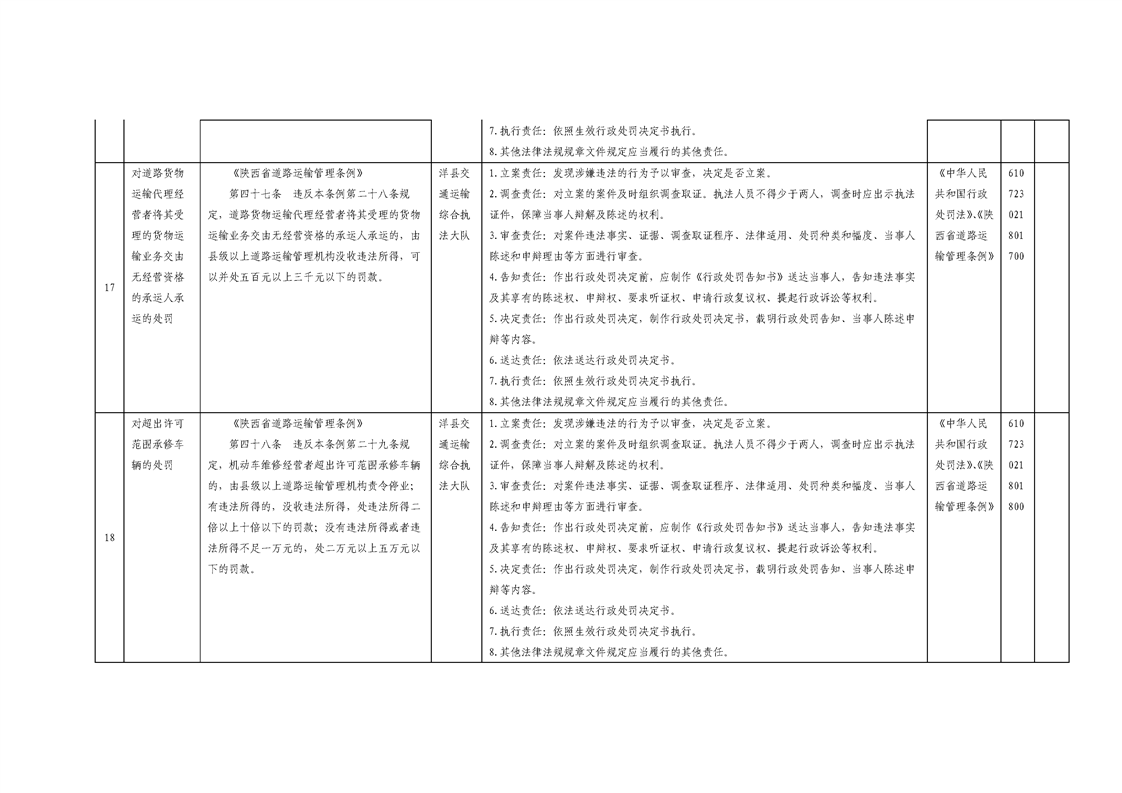 洋縣交通運(yùn)輸局行政執(zhí)法公示