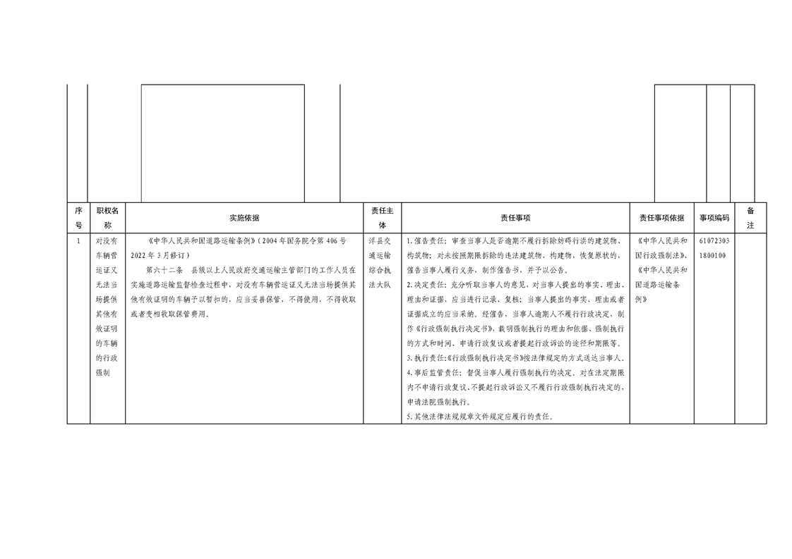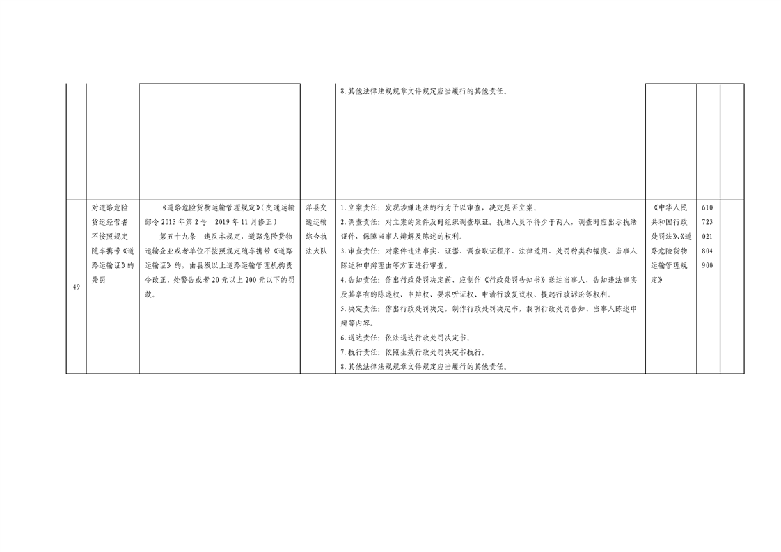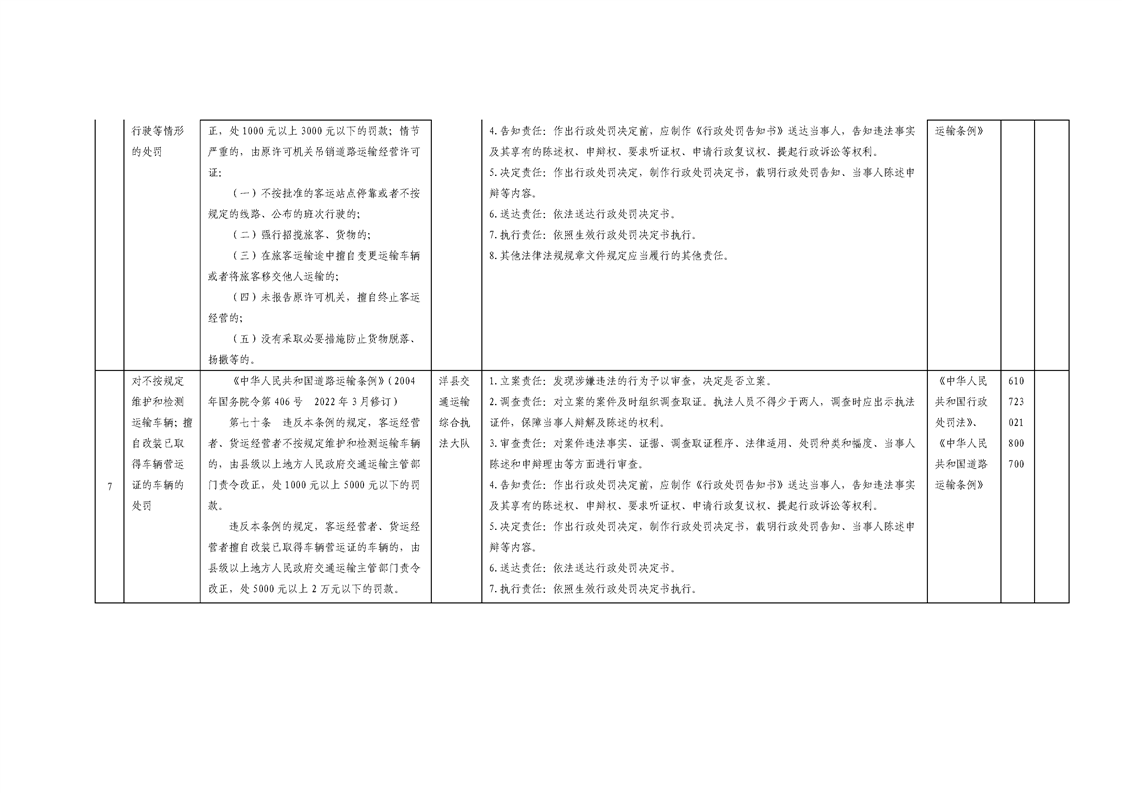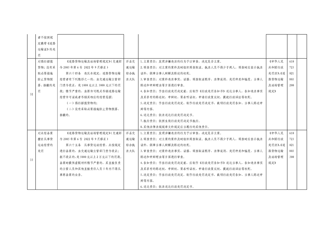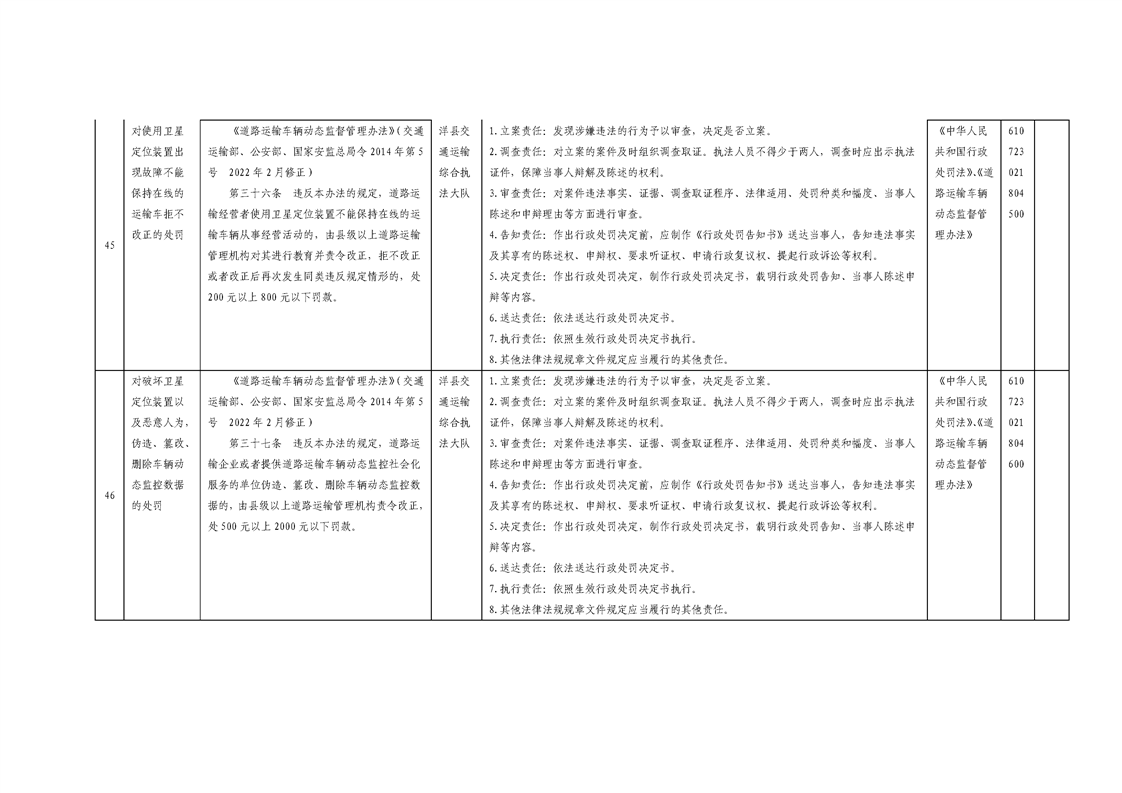 洋縣交通運(yùn)輸局行政執(zhí)法公示