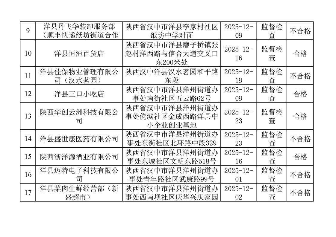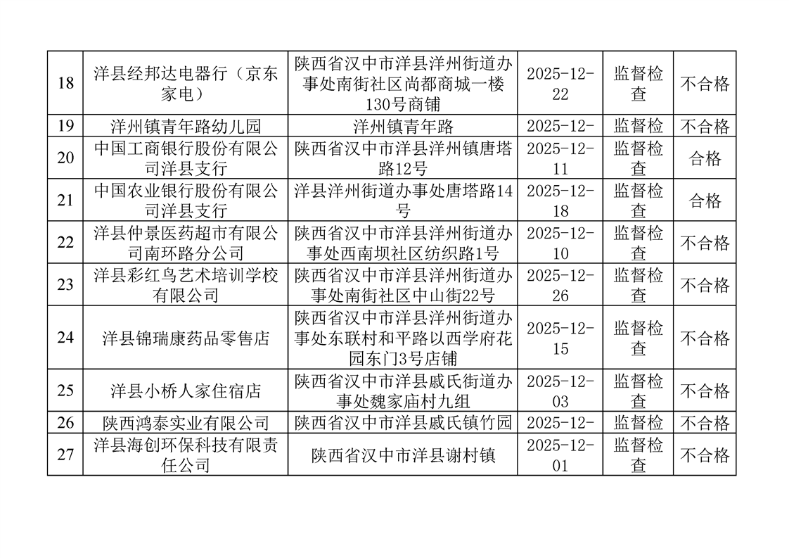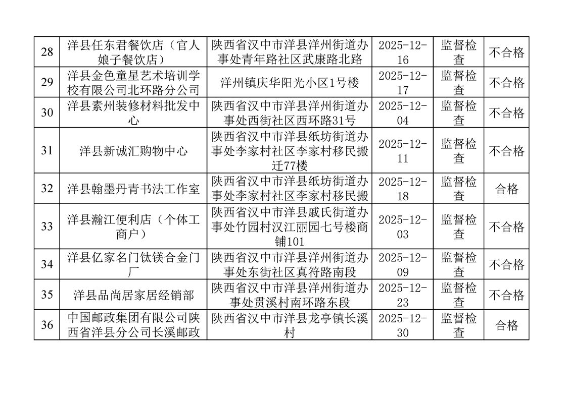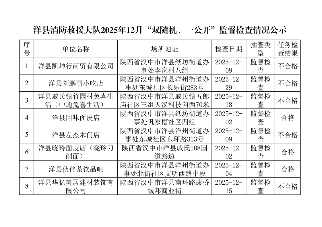 洋縣消防救援大隊2025年12月“雙隨機、一公開”監督檢查情況公示