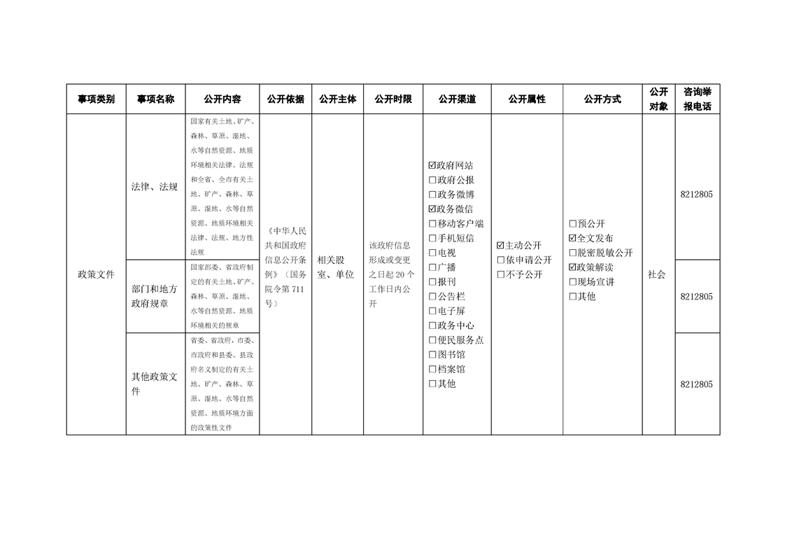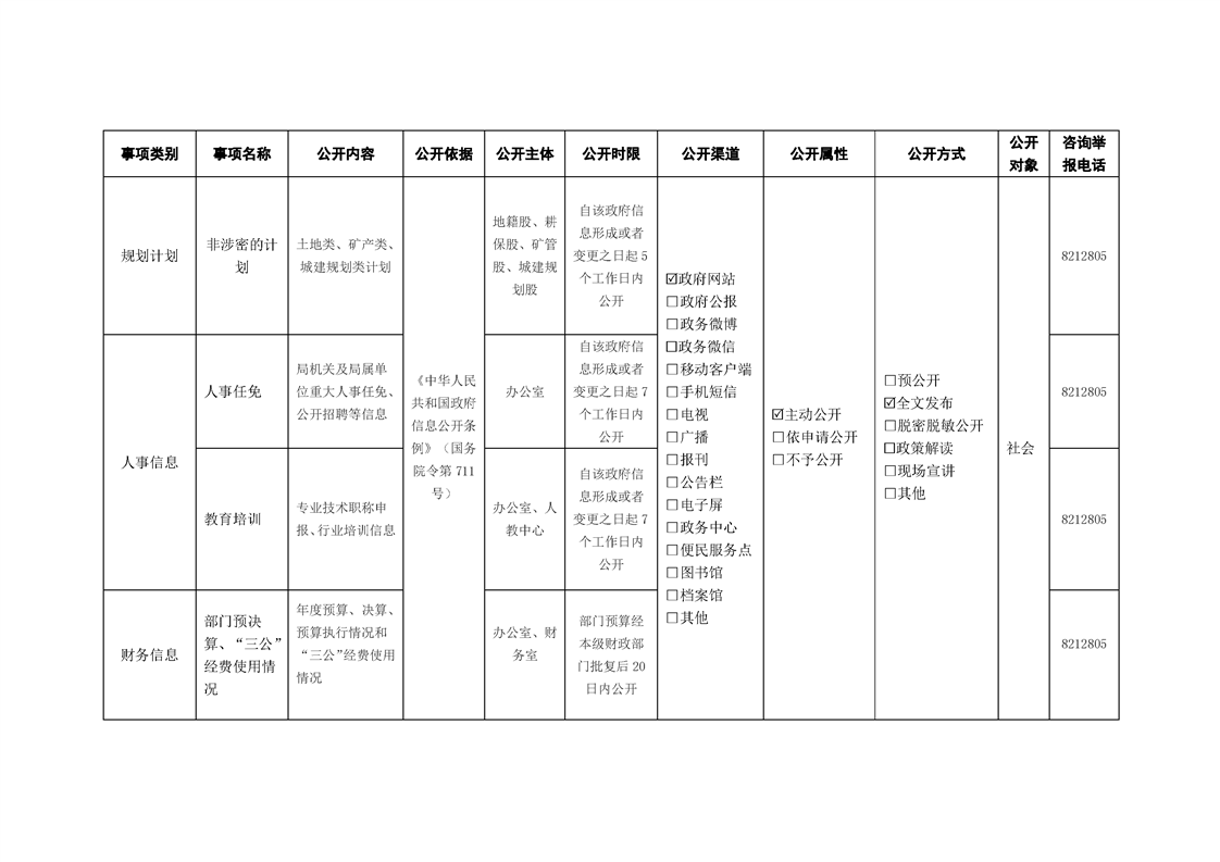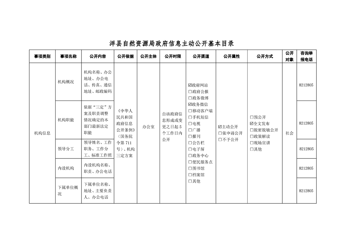 洋縣自然資源局政府信息主動公開基本目錄
