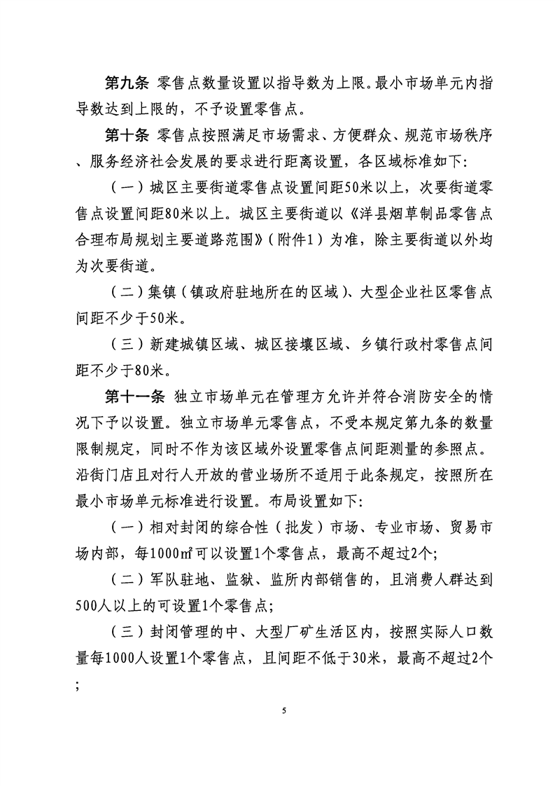 【有效】洋規〔2025〕001—煙草局001 關于修訂洋縣煙草制品零售點合理布局規劃部分條款的通知 |