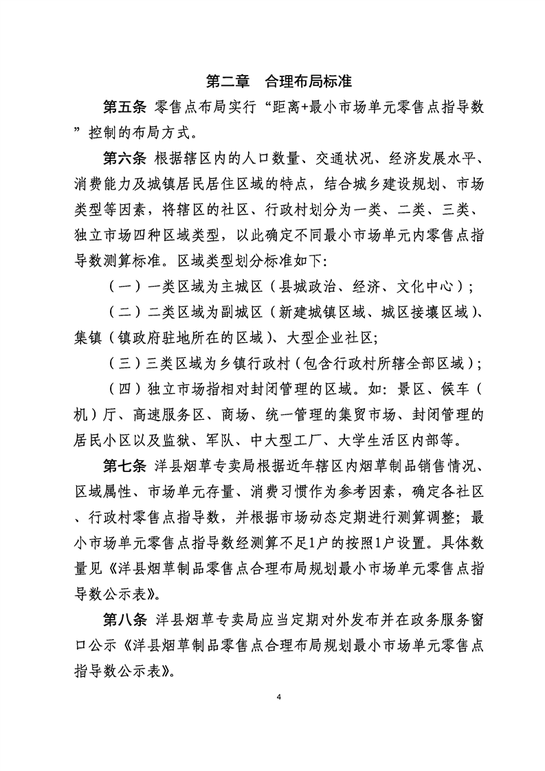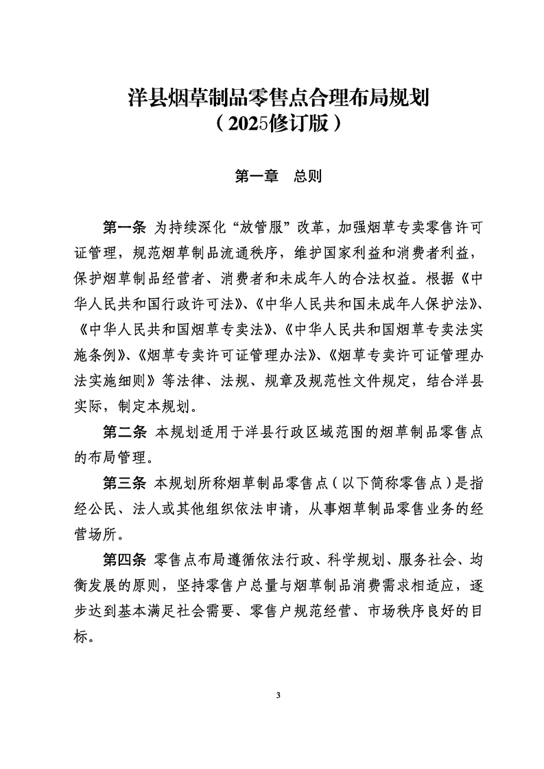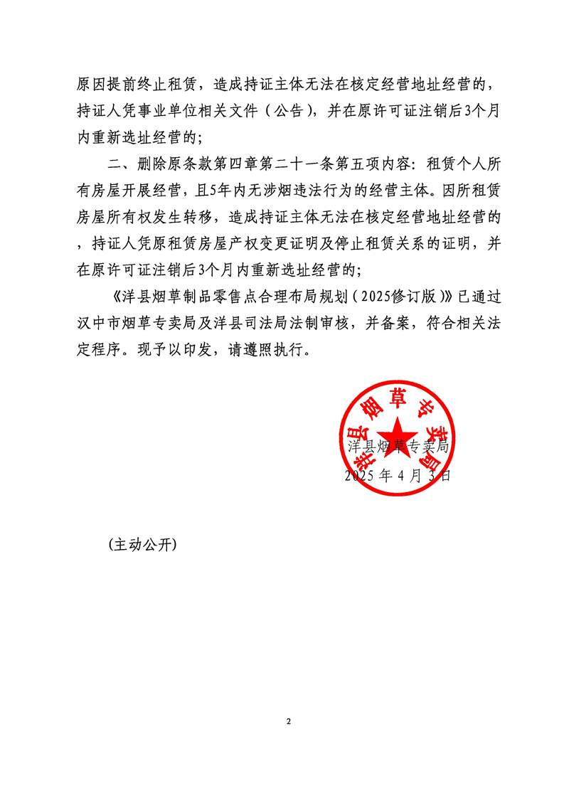 【有效】洋規〔2025〕001—煙草局001 關于修訂洋縣煙草制品零售點合理布局規劃部分條款的通知