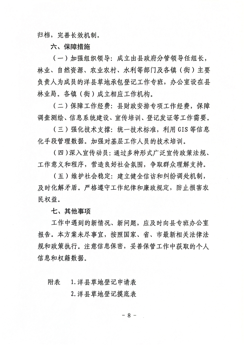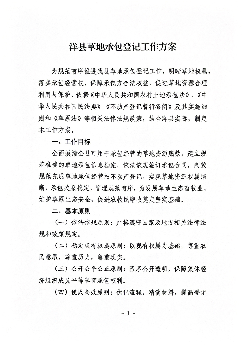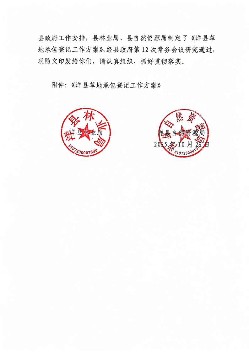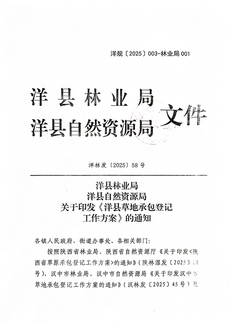 【有效】 洋規(2025〕003-林業局001 關于印發《洋縣草地承包登記工作方案》的通知