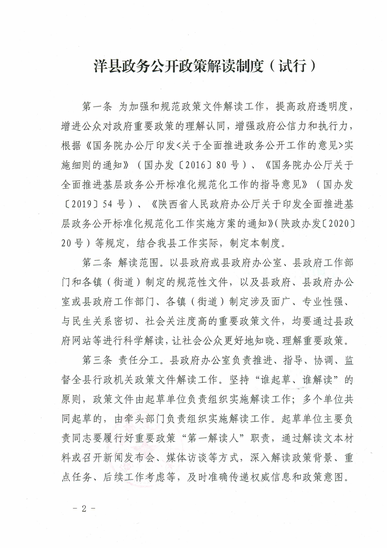 洋政辦發【2022】2號關于印發洋縣政務公開政策解讀制度(試行)的通知