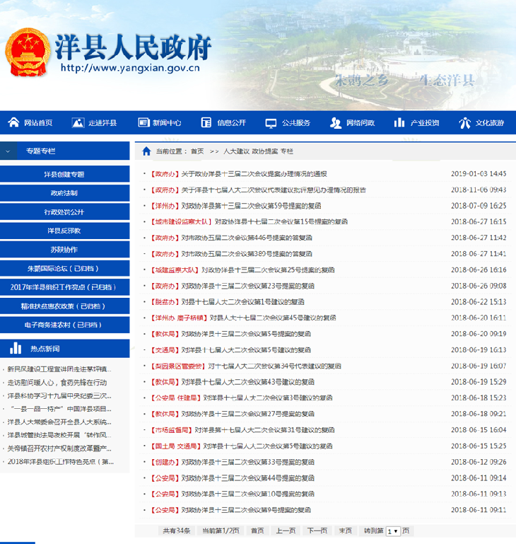 通過洋縣人民政府門戶網站公布人大代表建議、政協委員提案辦理結果32個,其中人大代表建議14個,政協委員提案18個。