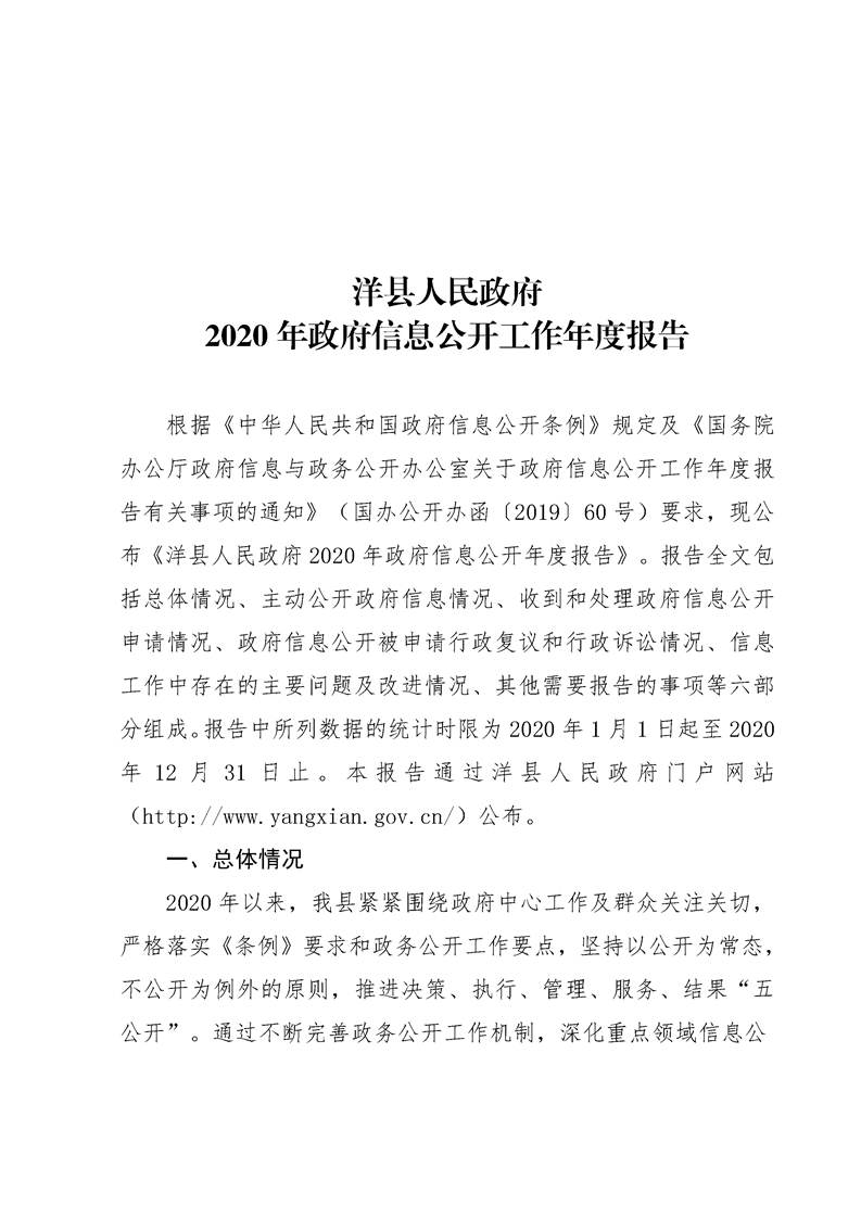 洋縣人民政府2020年政府信息公開工作年度報(bào)告 |